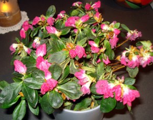 Som jag skrev innan förärades jag en praktfull azalea av vår granne strax före jul. Tillsammans med stränga förhållningsregler om hur jag skulle sköta den.