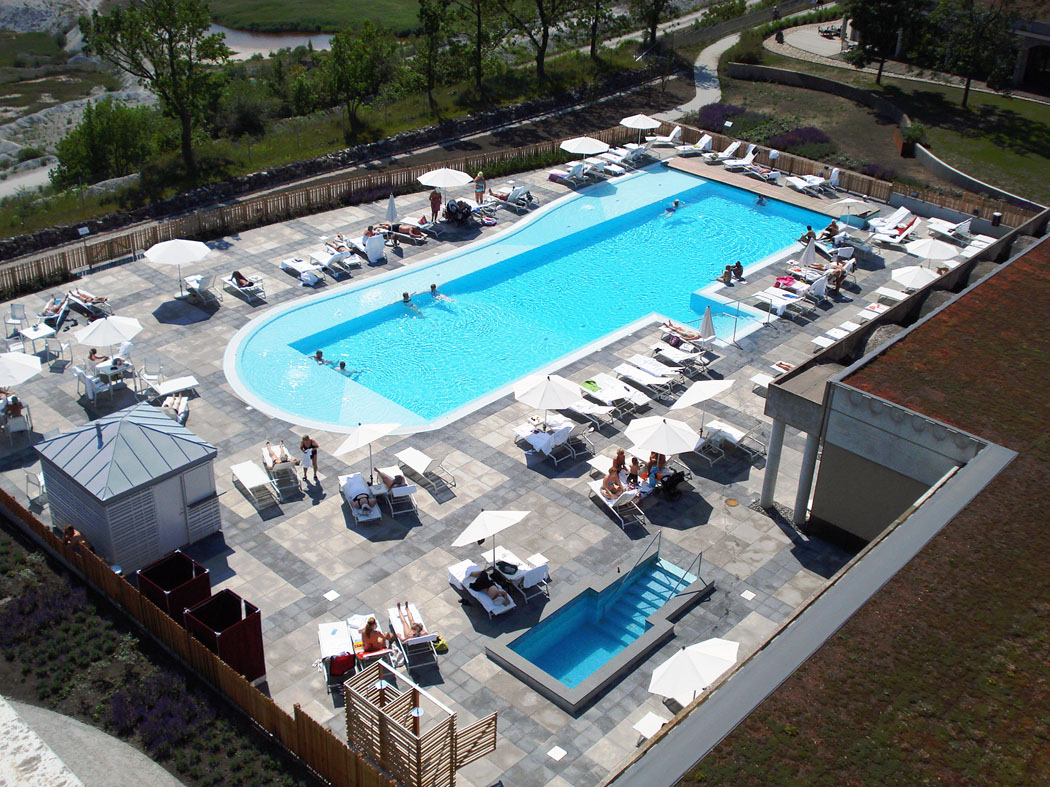 Vakna, stiga upp och äta frukost och titta ut på den tempererade poolen. Det dröjer inte länge förrän man ligger i samma pool. Plaska runt där framåt lunch, gå upp och äta lite och så gå ner och ta en siesta under en parasoll.