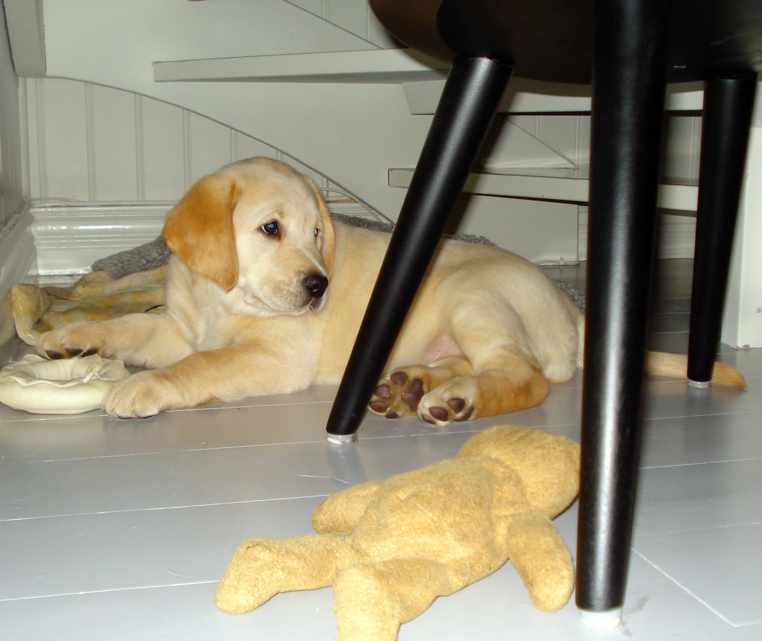 Inget barnbarn, men väl ett lurvigt litet substitut, Selma! Åtta veckor gammal urgullig labrador-goldenretrieverflicka.