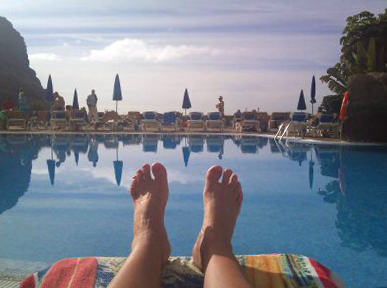 Sedan ett antal år tillbaks har jag mer eller mindre tvingat med Mannen på solsemester vecka 8, när jag har sportlov. Inte för att risken är överhängande att han skulle tvinga med mig på något sportigare typ skidåkning i stället, (Det försökte han två gånger för många år sedan och insåg det hopplösa. Jag är tjockskallig, men inte född med brädor på fötterna) utan mest som en överlevnadsstrategi tills värmen återvänder till Skåne.