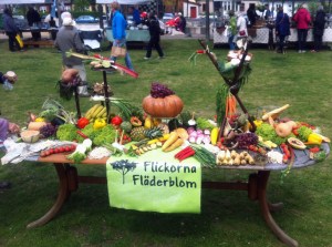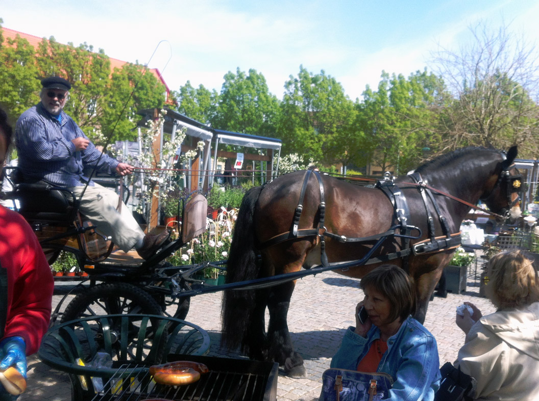 Vi fick också tips om en annan inramare i närheten och fortsatte cykelturen, en liten bit, tills vi kom upp till torget. Där hände det grejer! Limhamns blomsterfest, vilket innebar att torget var fullt med marknadsstånd där det förutom blommor såldes kryddor, honung, frukt och grönt, böcker, spelades folkmusik, erbjöds hästskjuts och serverades korv, glass och kaffe.