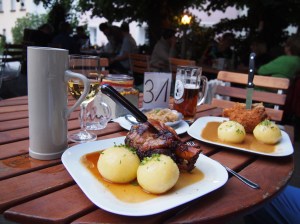 Priserna i Bad Berneck är fortfarande väldigt blygsamma. Vi betalade t ex bara fem Euro styck för en Hax’n med något som påminde om kroppkakor. Gott? Nja, väldigt bastant i alla fall.