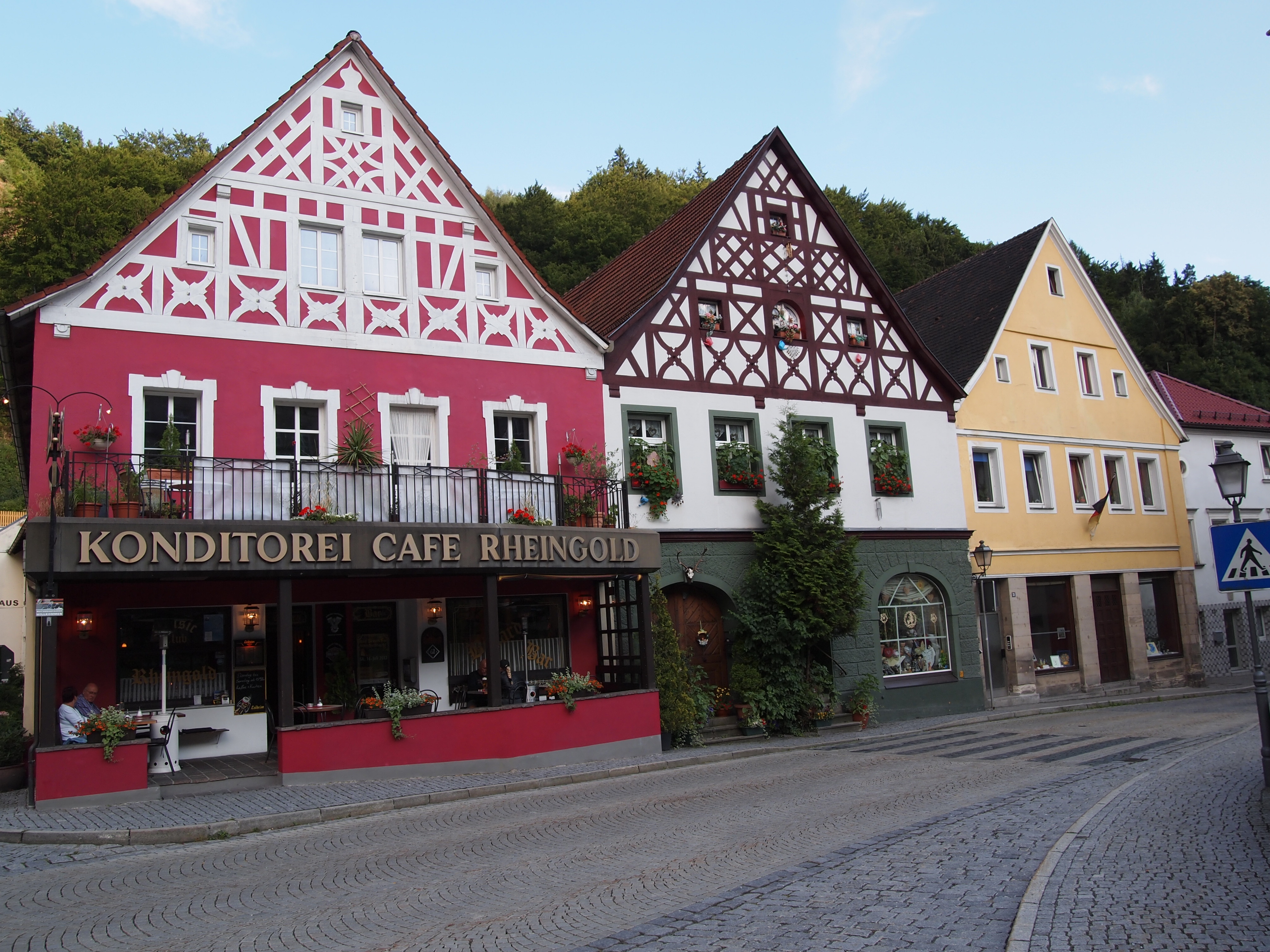 Visa av erfarenheten körde vi av Autobahn i god tid för att leta efter någon övernattning. Då hade vi kommit in i Bayern. Den första byn vi kom till hade ett Gasthaus, men det var fullbelagt. De tipsade att vi skulle köra vidare till nästa by och det gjorde vi. Det var tur! Byn, Bad Berneck, var en pärla. Vacker, och med massor av både hotell och restauranger.