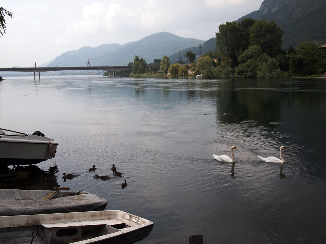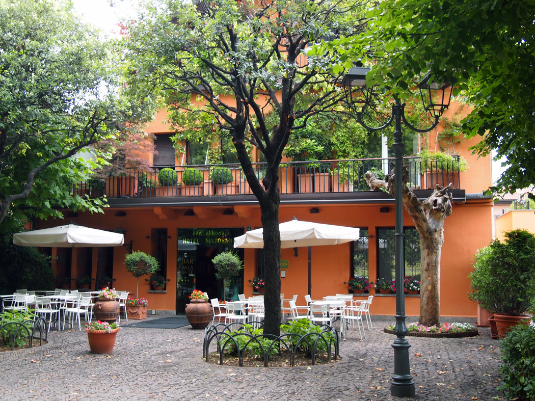 När min smartfån först påstått att hotellet låg på museets parkering, och sedan skickat in oss mot enkelriktat med cirka fem cm tillgodo på varje sida bilen, insåg jag att slaget var förlorat och lotsade oss ut ur gettot. Den vanliga, hederliga pappersbilatlasen från DDR-tiden visade att närmsta ort vid Comosjön var Lecco, och med booking.com i smartfånen kunde jag boka rum där. Med utsikt över Comosjön på Hotel don Abbondio.