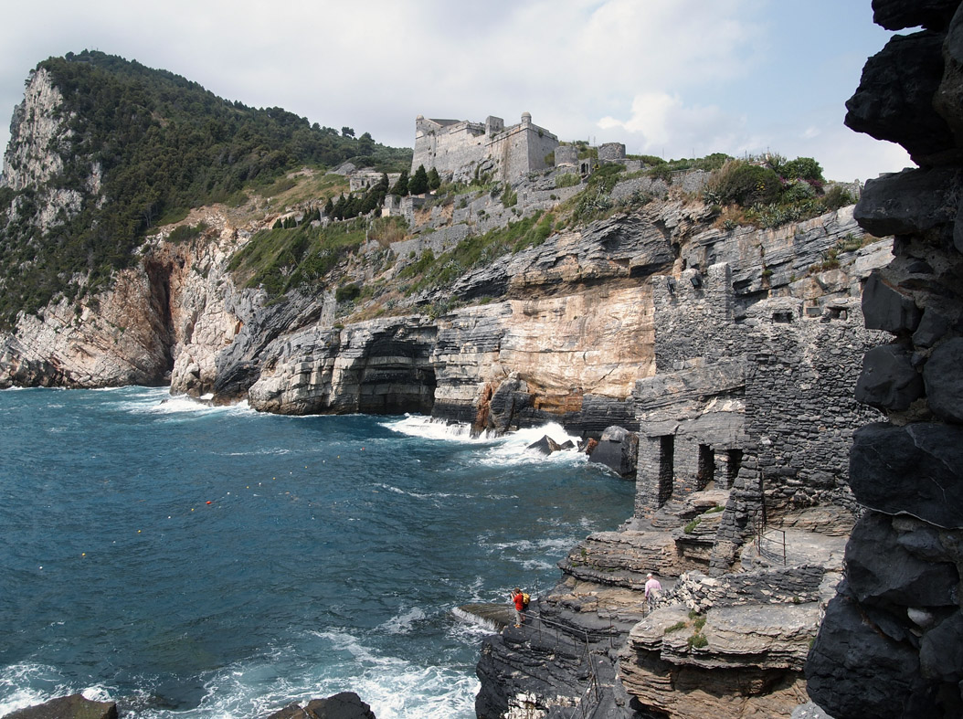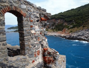 På morgonen upptäckte vi att det hade regnat, och det var faktiskt lite svalare, bara 23 grader. Lördagen skulle ägnas åt att besöka Portovenere, udden utanför La Spezia med småöar utanför. Förr i tiden var det en viktig försvarspost.