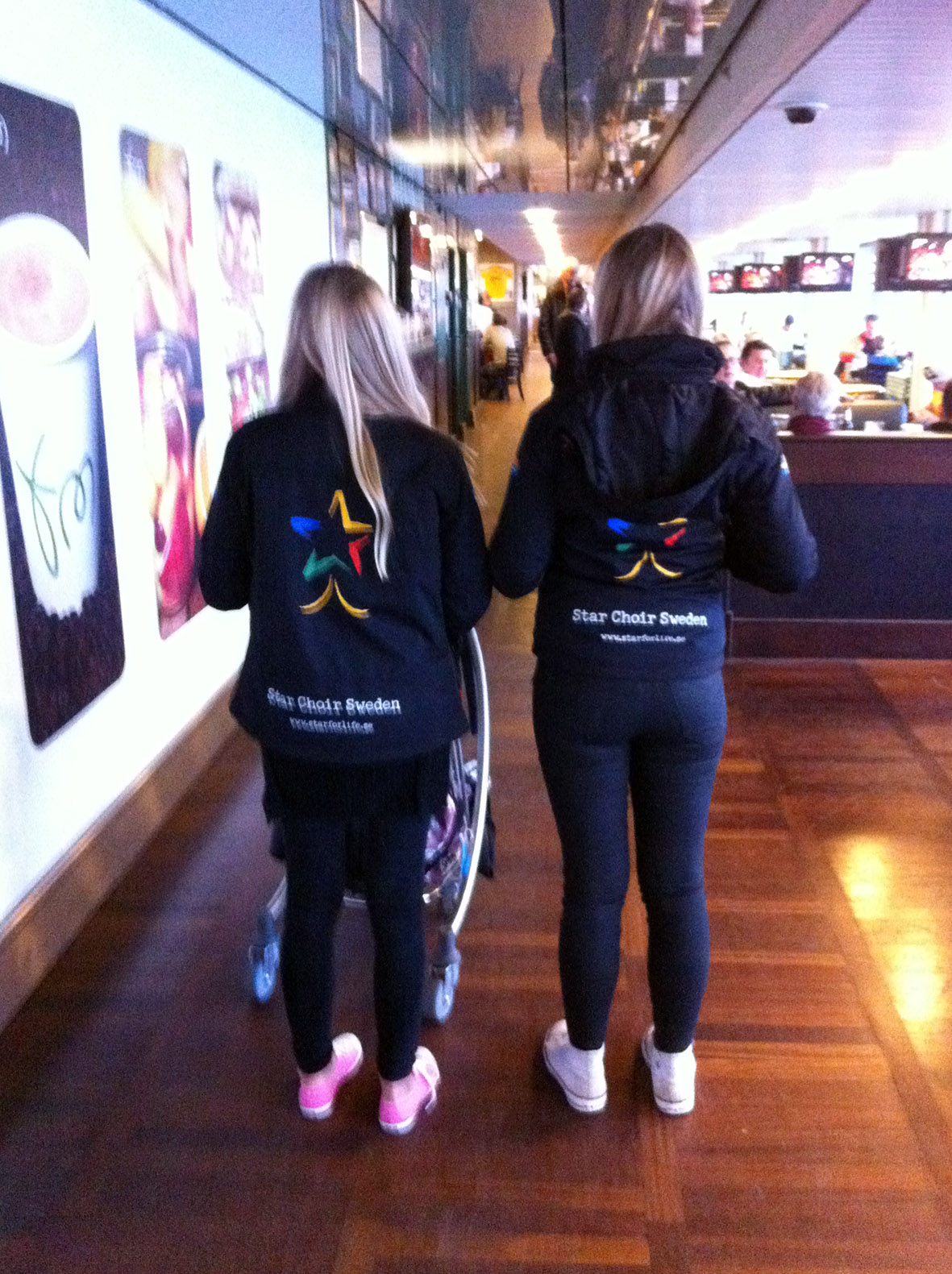 Väl inne i avgångshallen träffade vi en del andra Star for lifare – lätt igenkända i sina Star choir-jackor. Tjejerna väckte den uppmärksamhet de förtjänade!