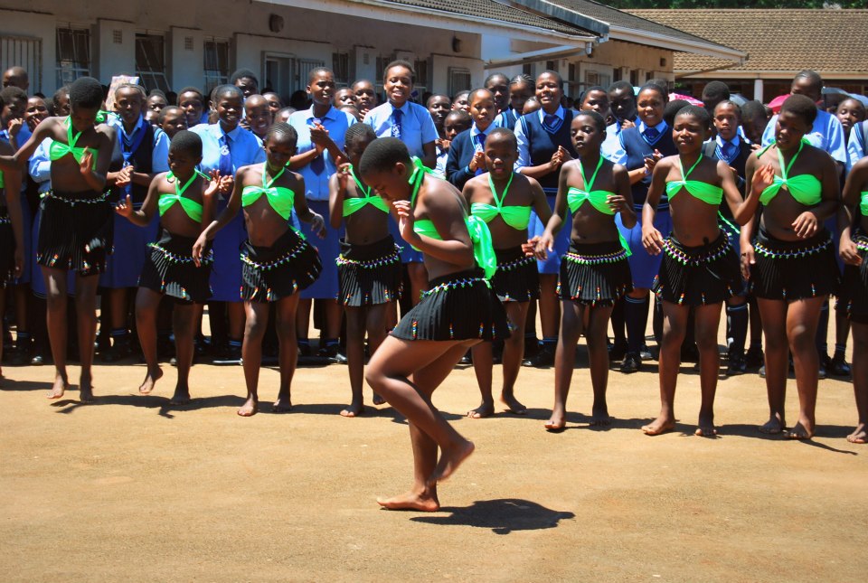 När i närmade oss Empangeni ringde de och efterlyste oss och vår chaufför såg  återigen förvånad ut och undrade när vi skulle ha varit där. Halv tio sade jag, och då var klockan fem i elva. Nu såg han verkligen paff ut. Han hade varit på kontoret sedan sju på morgonen och ingen hade sagt att han skulle hämta och köra oss förrän klockan halv nio.  En och en halv timmes försening innebar att våra planerade workshop inte kunde hållas. I stället blev det direkt lunch från skolköket, och sedan föreställningen till vår ära. Vi blev placerade i karmstolar tillsammans med skolans rektor, med alla 1400 elever stående runt om skolgården. Den  manlige musikläraren, dagen till ära i vit kostym, showade loss. Han drog igång talkörer, klappningar och vild medverkan av alla elever. När 1400 elever skriker Mrs Lindhe i talkör är det lätt att bli egoboostad! Förutom det framfördes sång, dans och dikter till vår ära. En underbar detalj var när ett gäng tjejer dansade zuludans med höga sparkar och korta kjolar, så hade inte alla trosor under. Det uppmärksammades av ett gäng killar i den yngsta klassen och de fullkomligt kreverade av skratt. Tjejen som dansade tog det med upphöjd värdighet, lyfte på kjolen där bak och vände rumpan mot småkillarna.
