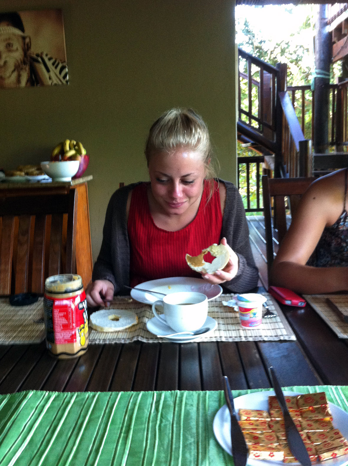 Ännu en dag var planerad på vår skola. Nu skulle vi bli upphämtade klockan 8.00 för att kunna åka dit i normalt tempo och komma fram 9.30. Det innebar att vi för första gången kunde äta frukost på lodgen istället för att få en matsäck med. Johanna skrattade högt av förtjusning när hon upptäckte burken med jordnötssmör och lade in en rejäl dos. Den tjejens ämnesomsättning gör mig minst sagt avundsjuk.  Jordnötssmör