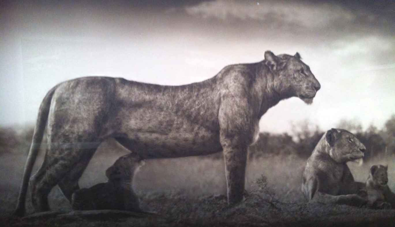 På utställningen visas också en film om jakten på elefanter, en film som gjorde det lite svårt att svälja. När jag därefter såg det fantastiska fotot på lejonhanen blev det omöjligt. Lejonhonan med den diande ungen därefter utlöste min gamla lejonallergi med rinnande ögon och lätt hulkande hosta. Igen. Plus en enorm längtan till Afrika.