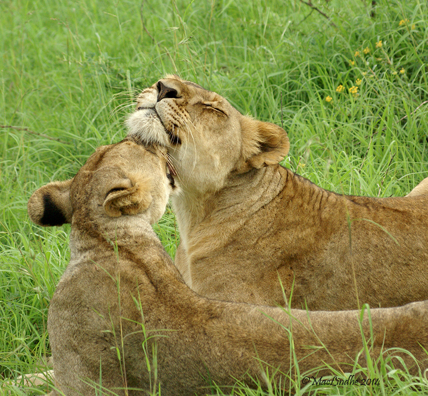 Efter lite afternoon tea i matsalen som tillhörde vår lilla tältby bar det ut på den första safarin. Den bar frukt, vi började med lejonhonor med ungar, noshörningar som parade sig, zebror, giraffer, bufflar med nyfödd kalv och ett antal antiloper. Lite kul att medan vi begapade lejonen körde det upp en annan jeep och plötsligt hördes röst från den som ropade