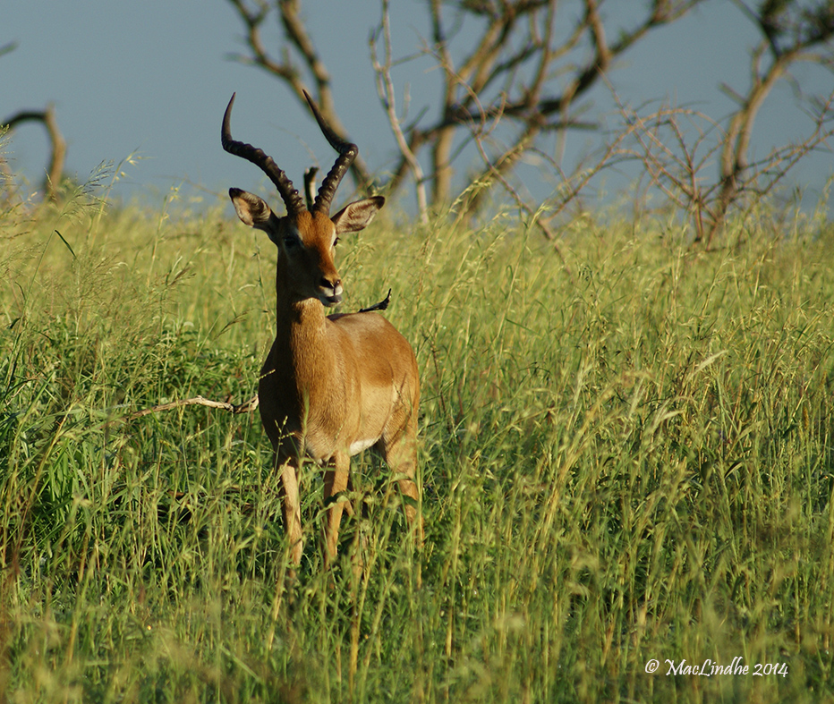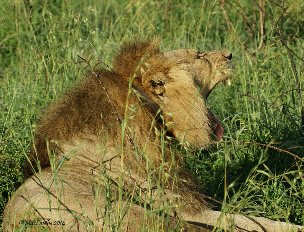 Klockan fem på morgonen på nyårsafton blev vi väckta för då var det dags för en morgonsafari. Djuren är inte riktigt anpassade till att turister vill ha sovmorgon på semestern. Det blev en snabb dusch där ute – ljuvligt – innan vi gav oss av. Denna gång såg vi fler lejon, även en hane som gick och lade sig bakom jeepen, två geparder som strök sig intill bilen innan de helt oberörda traskade iväg vidare, vägen fram och så de ‘gamla vanliga’ antiloperna, gnuerna, osv. Man blir lätt bortskämd.