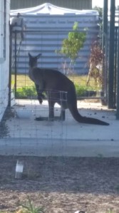Vi bor alltså ute vid något som heter Baudin Beach. Här finns orörd natur – tänk bara en lång strand utan en människa, kängurur lite varstans, bl a utanför grannens dörr. Han brukar tydligen ge dem mat.
