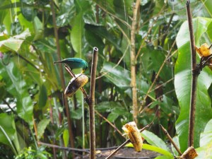 Vid kanten av restaurangens terrass hade man spetsat små bananer och massor av fåglar kom och åt frukost, de med. Perfekt och lätt att få några riktigt bra bilder!