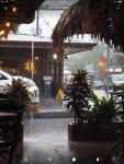 Samhället som är vårt hem några nätter framöver heter La Fortuna och är en total kontrast mot stillheten i lodgerna i regnskogen. Här är trafik, restauranger, butiker, musik, trafik och kulört blnkande belysning. Vi bort på Bosco Inn Lodge, två kvarter bakom huvudgatan och detta liksom Ara Ambigua är riktiga murade byggnader. Men regnet är ungefär det samma.