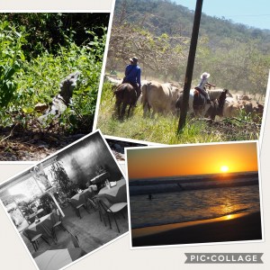 Om Santa Teresa annars, vad kan man säga? Om övriga Costa Rica varit grönt och fuktigt är här hett och dammigt. Och då menar jag dammigt. Samhället är uppbyggt längst en huvudgata som går parallellt med stranden, som förresten bjöd på en fantastisk solnedgång. Gropig grusgata, inga trottoarer. Hotell, serveringar och surfbutiker. De flesta man ser är max 30, vältränade, tatuerade, killarna iklädda surfarbadbrallor, tjejerna minishorts och nån hopsnörd top. Barfota, flipflop eller fyrhjuling. Och en och annan bättre begagnad amerikan som glömts kvar sedan senaste hippievågen.