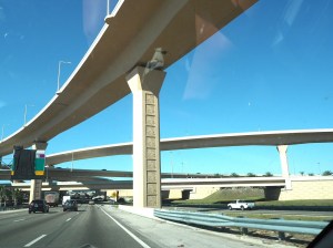 Jag uppskattar inte trafiken här ett endaste dugg. Sex filer i vardera riktningen och vår gps-tant som med en tonårskilles framförhållning talar om in a tenth of a mile turn left (160 m) när man ligger i högerfilen. Puh! Att klaga på trafiken vid Toppenrondellen i Höllviken, Petersborg eller för den delar E6:an känns bara löjligt. Allt här är uppbyggt kring att man ska ta bilen. Det finns restauranger inom några km avstånd, men inga vägar att gå dit, och vårt rara värdpar avråder oss. T o m Googlemaps fick upp en varningssymbol när jag försökte knappa in gångväg.