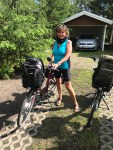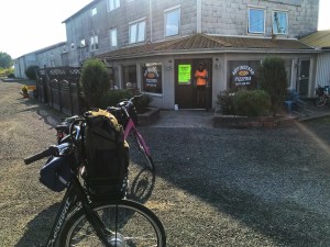 Vi fick vår familjepizza att dela. Spände fast den ovanpå packningen och trampade de sista kilometrarna till Svenstorp.