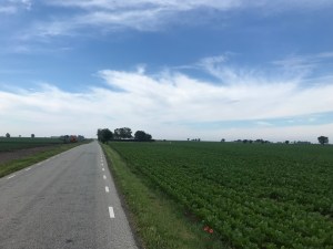 Sträckningen av Sydkustleden österut genom Vellinge Kommun bjöd på berusande dofter av fläder, rosor och schersmin, och väl ute ur byn drillade lärkorna och en kråka jagade en glada i luften. Vädret har alltså varit perfekt att cykla i denna första dag.