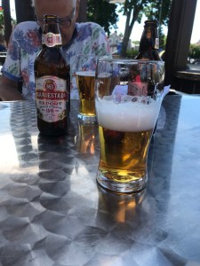 Mannen kom på att han nog kunde behöva lite mer power han med, så det fick bli två öl mot att vi fick ladda. Verkligen tungt att hälla i sig i solskenet…