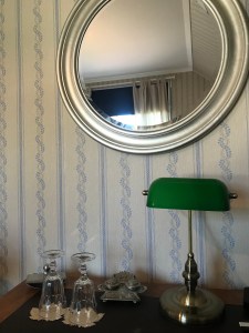 Vårt boende ja. Så fantastiskt vackert. En gammal träkåk med enorma blommande honungsrosor i den lilla trädgården, och väldigt smakfullt inrett. I vårt rum har vi en stor vit kakelugn, vacker säng med tillhörande pottskåp, och i vårt badrum är badkaret stort med lejonfötter. Nya Stan Bed & Breakfast heter det om någon undrar.