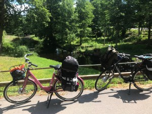 En bit cykelväg, lite stor väg och sedan visade skylten Kosta 20 km. Hurra, tänkte vi. De första 2 km. Innan vi insåg att den var lång, spikrak och backe upp och ner. Och mitt batteri börja sjunga på sista versen. Men det var kul så länge det varade… Tyckte mina knän också och när vi hade ca 8 km kvar meddelade jag att nu går jag. Det är bara det att en överlastad elcykel är allt annat än lätt att leda i uppförsbackar.