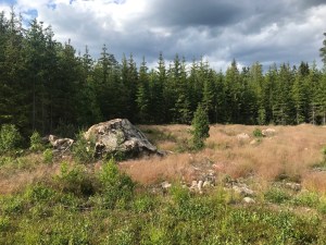Mannen knorrade att det var en omväg och att batterierna aldrig skulle räcka. En titt på kartan när vi laddade både dem och oss i Nybro gjorde att jag gav med mig. Det händer. Sällsynt, men dock. Förresten fick vi dra på regnskyddet på packningen medan vi åt. När vi kom ut kunde vi ta av det igen och fortsätta sola oss.
