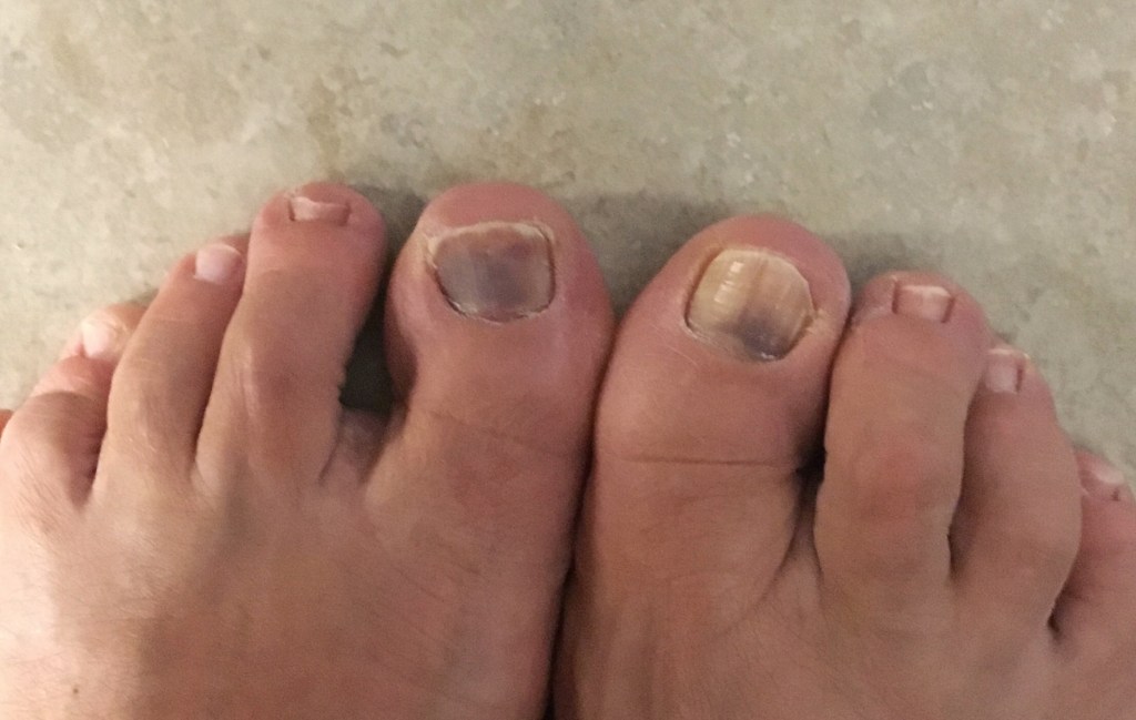 Ikväll får vi besök av goda vänner som bor några byar bort. Om takterna sedan ungdomen sitter i kanske vi får lite mer tryck på dansgolvet. Eller, det enda mina tår accepterar är sandalerna, och de har traktorsula. Inget glid att tala om alltså. Först för mycket tryck på dem i walkingskorna i alla nedförslut på vandringarna, sedan lyckades en plåtflaska med hårmousse dansa ur necessären och landa med kanten på min vänstra stortå. Men färgen är ganska snygg. Ska kanske köpa nagellack i den färgen så alla tårna får samma nyans?
