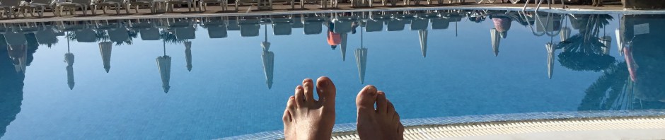 Tömma ryggsäckarna, dra på badkläder och ner och få lite mat i magen och fukt i strupen innan vi landade i var sin solstol. Åtminstone jag somnade tämligen direkt och vaknade av att min äkte hälft stänkte vatten på mig.