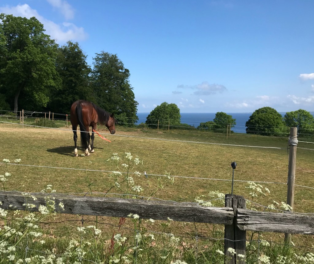 I morse gick vi istället rakt ner till havet och började följa den orange markeringen för SL5. Förbi hamnen och genom det gamla fiskeläget Arild, med alla de vackra små husen och snart kom vi fram till skogen och leden svängde upp till vänster.