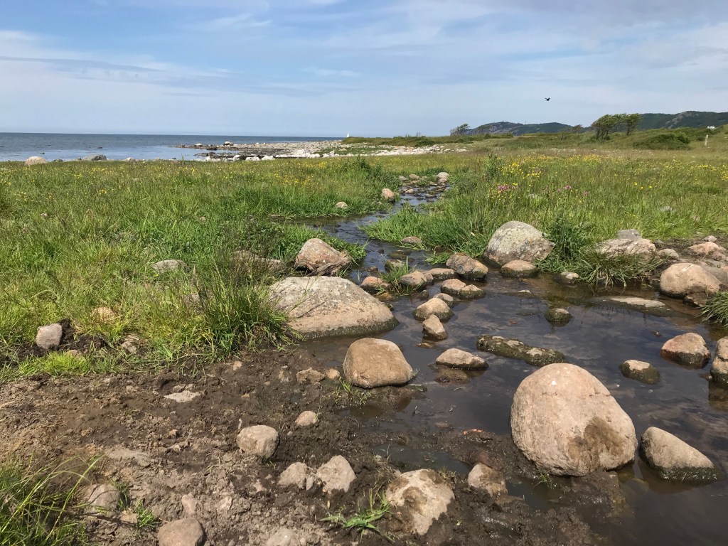 Vi gynnade i alla fall honom och köpte baguetter med köttbullar och rödbetsallad och toscasnäckor som fick bli vår lunch på stranden. En köttbulles färd på hälleberget (nästan, för riktigt så fasta magmuskler har jag inte. Än ) lämnade klara spår. Tur det är sista dagen som vi ska gå långt, annars hade shortsen börjat bli för kamoflagefärgade.