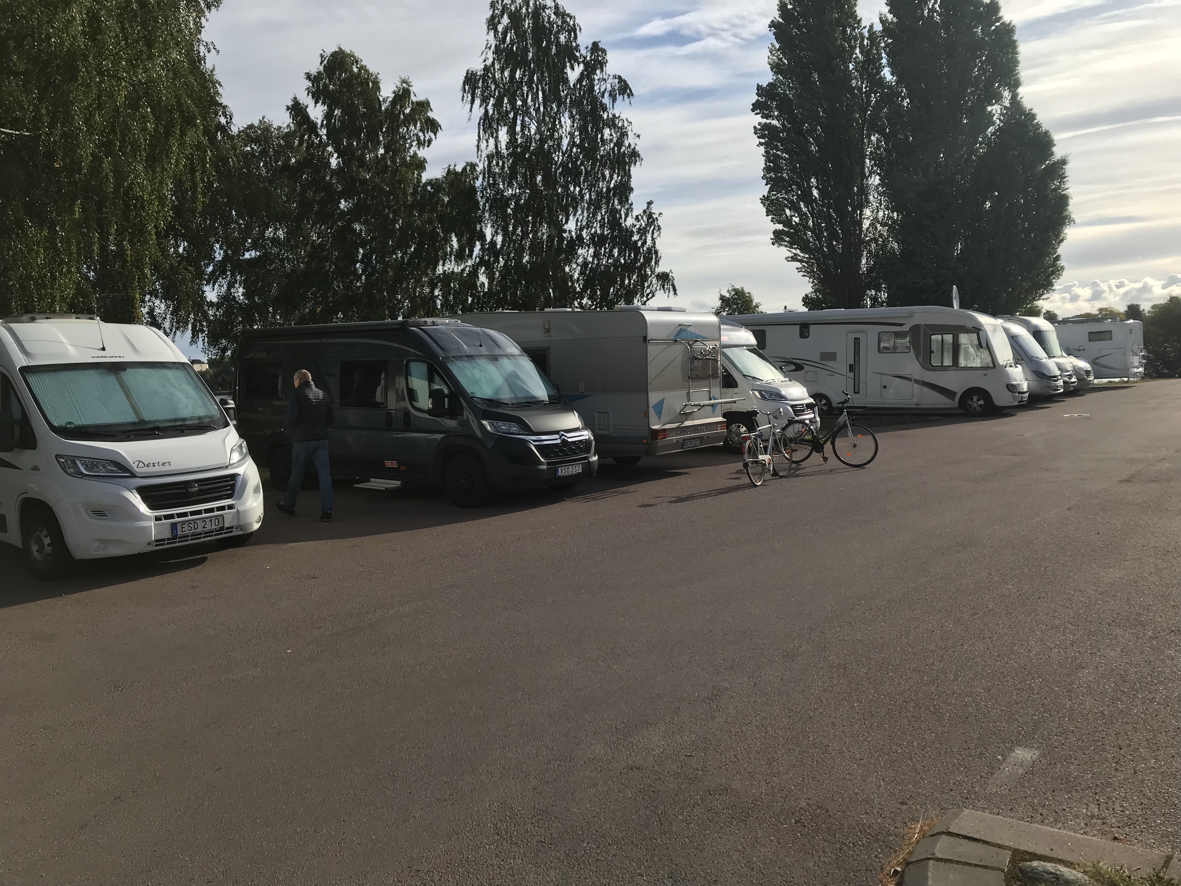 Vi gjorde i alla fall de vanliga morgonbestyren innan vi checkade ut och körde mot Karlstad. På appen husbilsvänner hade vi sett att det fanns en utmärkt ställplats vid Mariebergsskogen, och vi hade tur och fick plats där. Men var sjutton fanns sola? Den ska väl alltid skina i Karlstad?