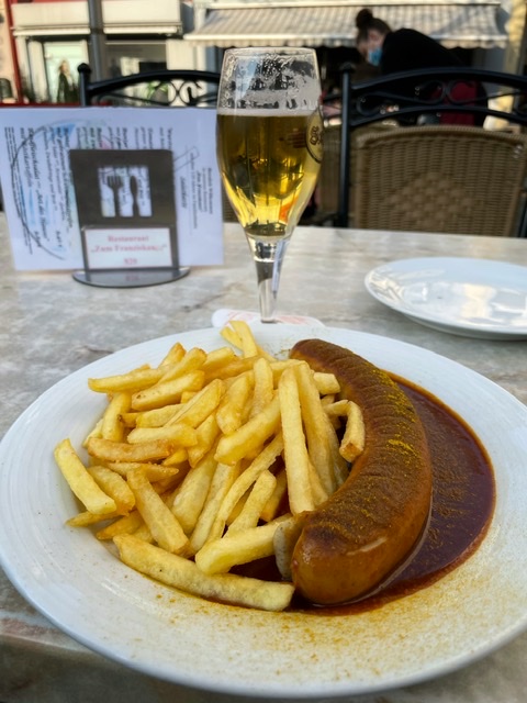 Hur som, vi rullade in på ställplatsen utmed Rhen som Thomas rekommenderat och knep den sista platsen med el. Livet började leka igen! När vi sedan gick runt i den underbara medeltida lilla staden Andernach vid Rhens kant, och satte oss på en uteservering med en öl och en currywurst sken solen.