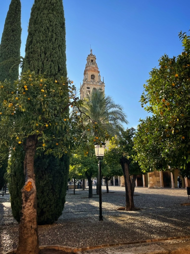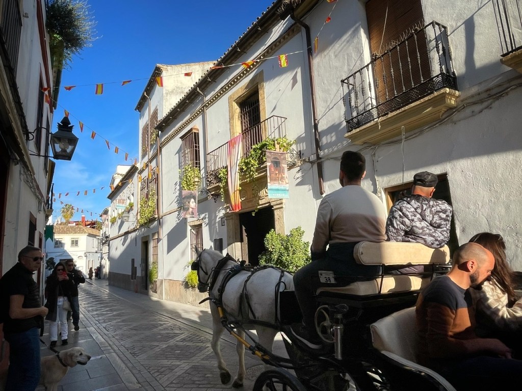Nu är jag ju inte det, utan vi rullade in i Cordoba och Mannen hittade direkt till ställplatsen som ligger väldigt centralt. Parkerade, justerade med blocken och tog hundarna med oss ner i gamla stan, några hundra meter bara. Vilken fantastisk plats! Blommande små gränder med mysiga serveringar och pampiga byggnadsverk. Mest känd är Mesquita katerdralen som från början var en moské. Här har människor med alla de tre stora religionerna levt. Den romerska bron med alla sina arkader är ett måste att gå över. Lunch med calamares och vin på en solig servering och vi var överens om att vi fått en ny favoritstad på listan!