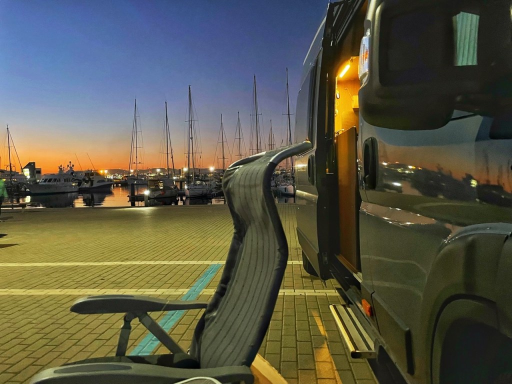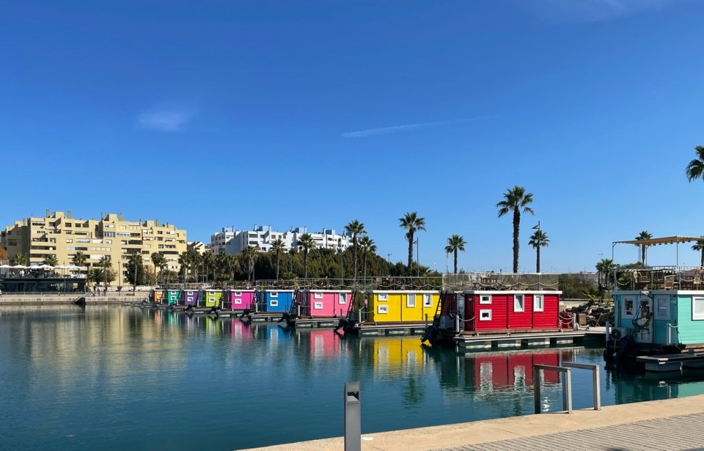 Dagens ställplats är nere i hamnen i La Linea, staden som ligger på den spanska sidan gränsen till Gibraltar. På ena sida har vi klippan, på andra alla fritidsbåtarna, eller snarare yachterna. Man kan även hyra en liten husbåt i någon glad färg här!