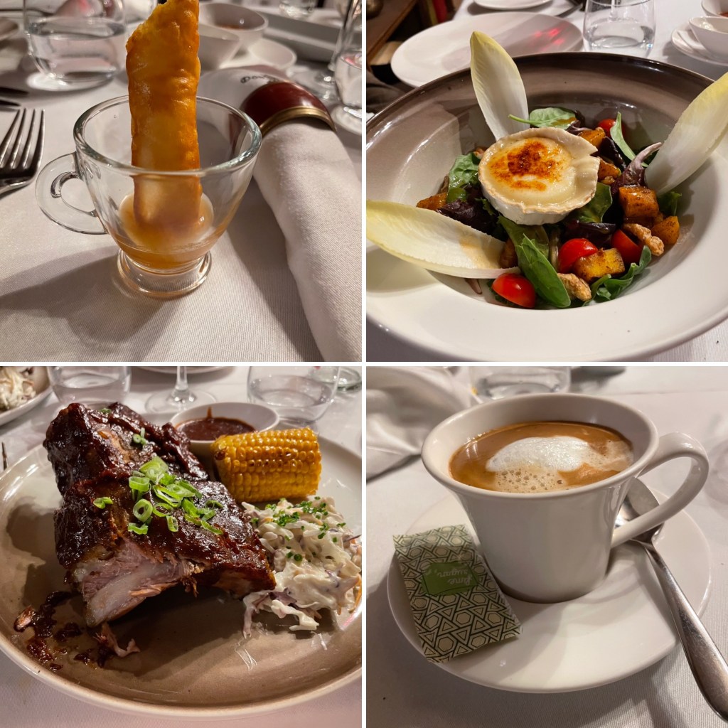 Om vi bokat? Nej… det hade vi inte, men vi fick sista lediga bordet. Inredningen var vackert rustik, med en litterär ton. Såklart fanns Cervantes karaktärer avbildade, och i bokhyllorna trängdes gamla böcker bl a Sveriges samlade historia.