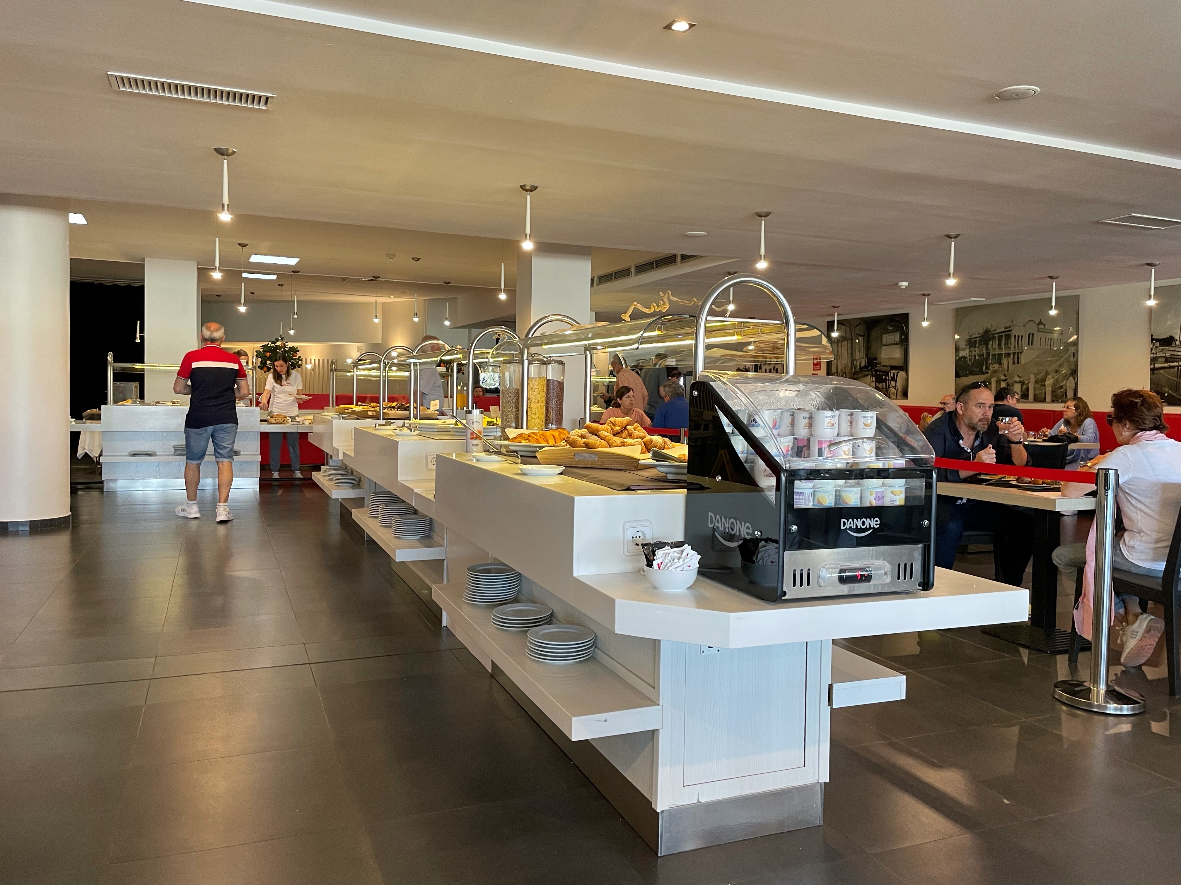 Entrén var stor och flott, med marmor, glas och blänkande mässing. Där var plats för många männsikor men fanns bara vi och tre uniformerade receptionister. Vi fick ett rum på sjunde våningen och åkte upp. Rummet var nästan identiskt med de vi bodde i på Princesshotellen på Gran Canaria. Hög standard med andra ord. I det facila priset av 900 sek ingick också en stor frukostbuffé.