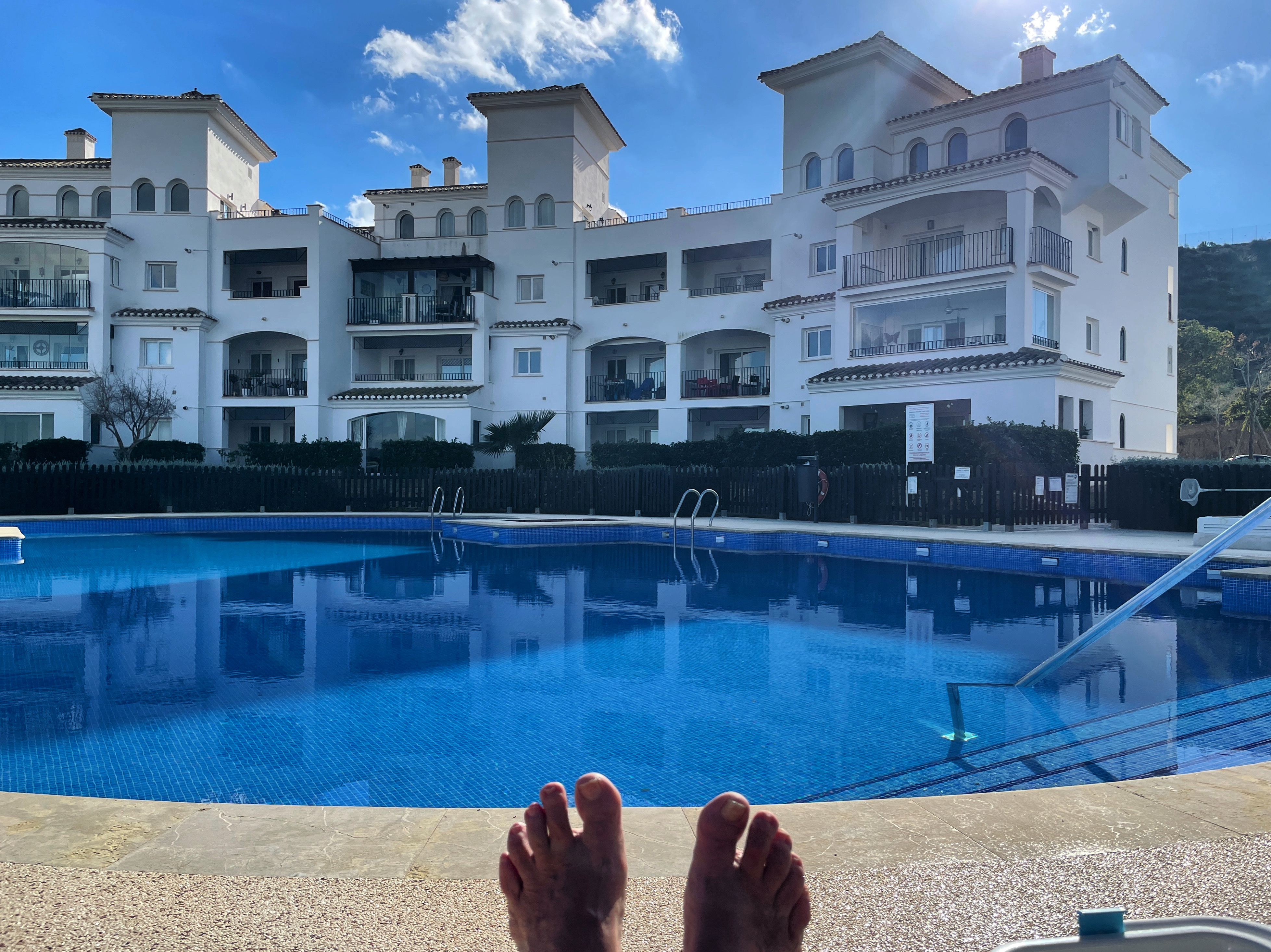 Nu har vi varit tre månader av fem i Spanien, och livet har hittat sina rutiner här. Vi sover längre på morgnarna nu, även jag, och väntar på att det ska bli lite ljusare och varmare. Kvällar och nätter har blivit mycket kallare. Temperaturen kan krypa ner långt under tio grader på nätterna för att sedan gå upp till närmre 20 i skuggan på dagarna. Härom morgonen när jag körde Mannen till flyget i Alicante stod vägtermometern på 0. Han har några möten att närvara på den här veckan.