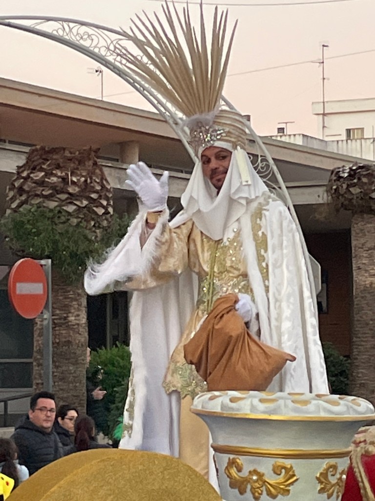 Många spanjorer firar jul på trettondagen i stället för julafton, och uppe i Pilar var det en stor parad med en skön blandning av olika åldrar och Disneyfigurer, vad som verkade vara alla dansskolor i trakten med orkestrar eller musikanläggningar och sist i tåget kom så de tre vise männen. Jag fick höra av en granne att en bekant till dem var en av de vise. Han hade blivit tillfrågad för att han är mörkhyad. De andra två gömde sig bakom skäggen.