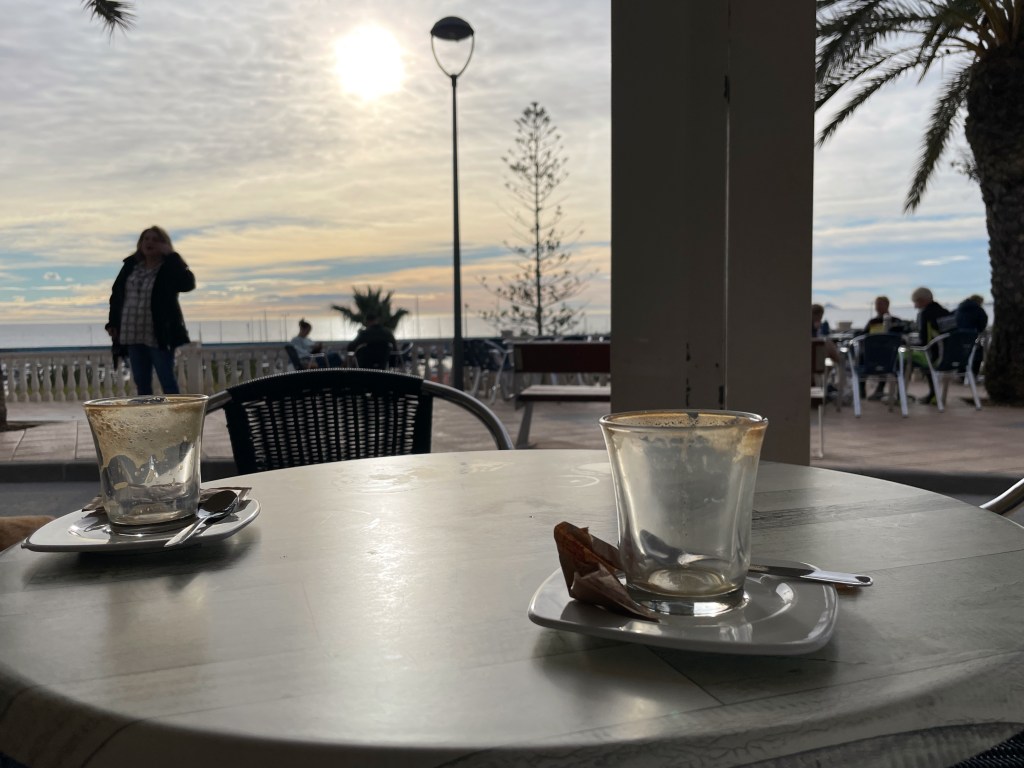 Cortadopausen på caféet vid marinan är numera så stadig att när tjejerna som jobbar där ser oss komma fixar de vårt kaffe så kopparna landar på bordet nästan samtidigt som vi på stolarna. Detta retade nyligen upp några fransmän som tydligen väntat en stund på att bli serverade, och jag fick bita mig i tungan för att inte påminna dem om Waterloo. Det har jag lärt mig av min brorson som tycker det räcker med engelska och spanska i den bostadsrättsförening han är ordförande i cirka fem mil härifrån.