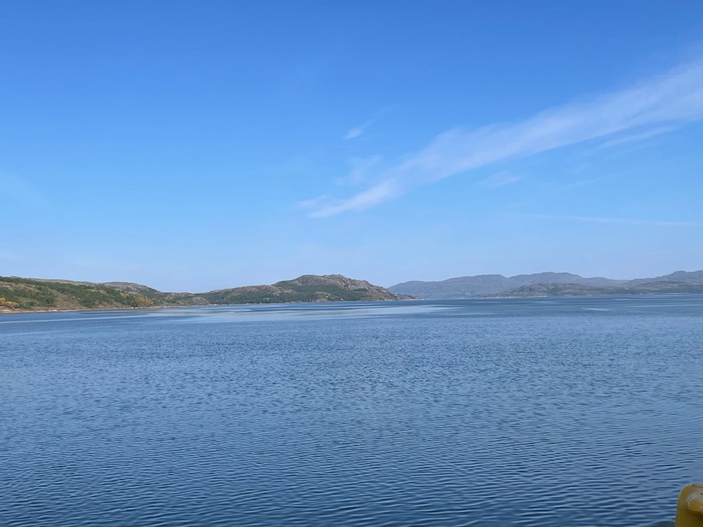 En buss väntade utanför och körde oss in till staden Kirkenes och Scandic hotell. Efter en underbemannad receptionist som försökte tillfredsställa en gnällig gruppresas gäster fick vi äntligen vårt rum. Väl där studsade vi av värmen som mötte oss. Minst 25 grader och inget vi kunde reglera temperaturen med. Fönstret på vid gavel hjälpte bara marginellt för här är också varmt utomhus. Jag drack två glas vatten, det var åtminstone kallt, och sedan gick vi ner i restaurangen och beställde in en fisksoppa som var hur god som helst. Men när vi bad om ett glas vatten till vårt vin kunde de inte servera det, för det fanns kolibakterier i vattnet så man skulle inte dricka det. Jag kände hur glad min mage blev… men vi hade köpt Gammeldansk med oss och tog en rejäl hutt när vi kom upp i vårt fortfarande lika varma rum.