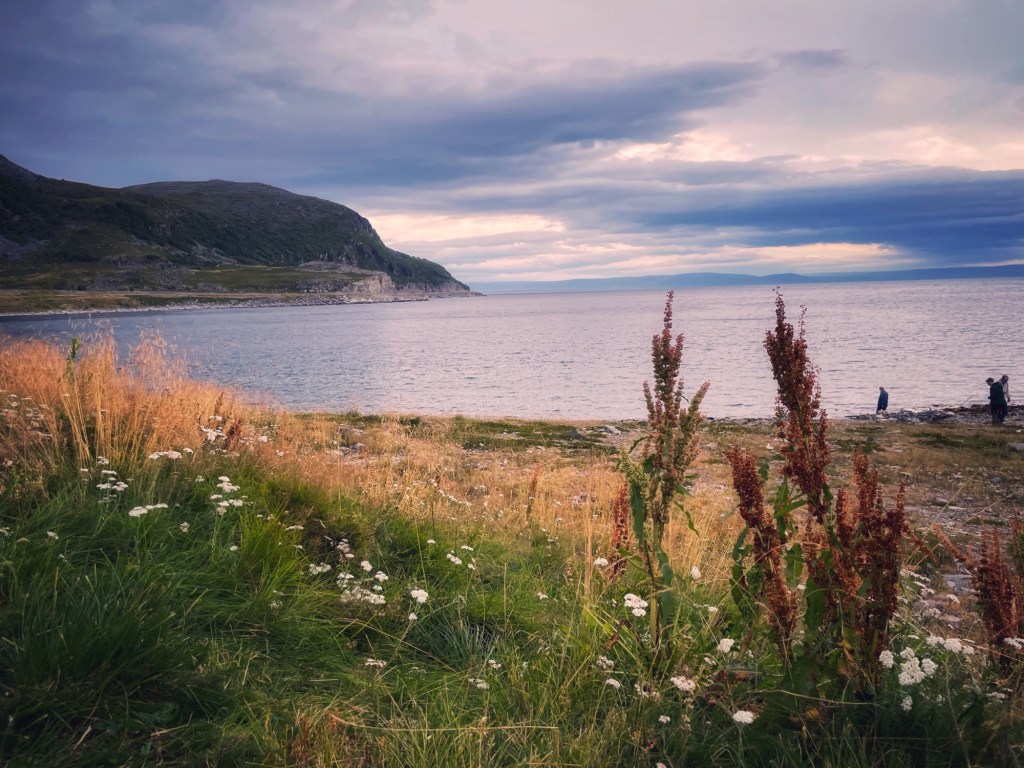 Vi beskådade den vackra arktiska tundran, som påminde en del om Stekenjokk, och även här stod en del husbilar. Det blev skratt i bussen när vi passerade en parkerad husbil, där ägaren lyft ut in portabla toalett, dragit ner byxorna och satt sig med tidningen, tydligen utan en tanke på att det skulle passera busslaster turister i tidig morgonstund. Tyvärr hann jag inte få upp kameran.