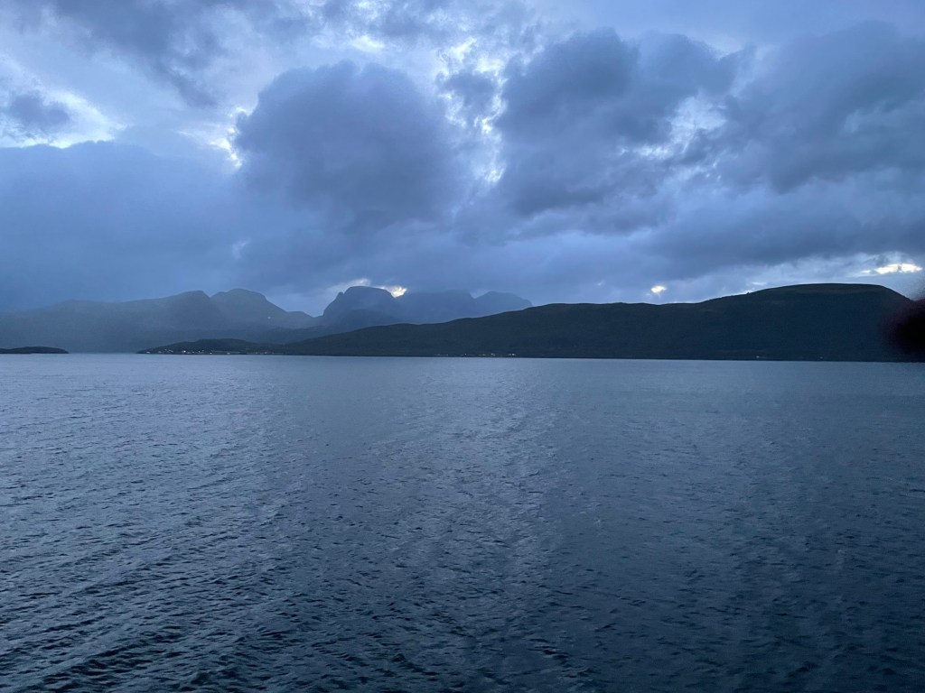 Vår italienske guide i bussen sade att vi hade tur med vädret, för hösten skulle börja i eftermiddag. Än så länge har han haft rätt, för nu öser regnet ner, och vi är glada att sitta i fören av båten och titta ut på fjärdarna. Den där nattvandringen i Tromsö känns inte så lockande.