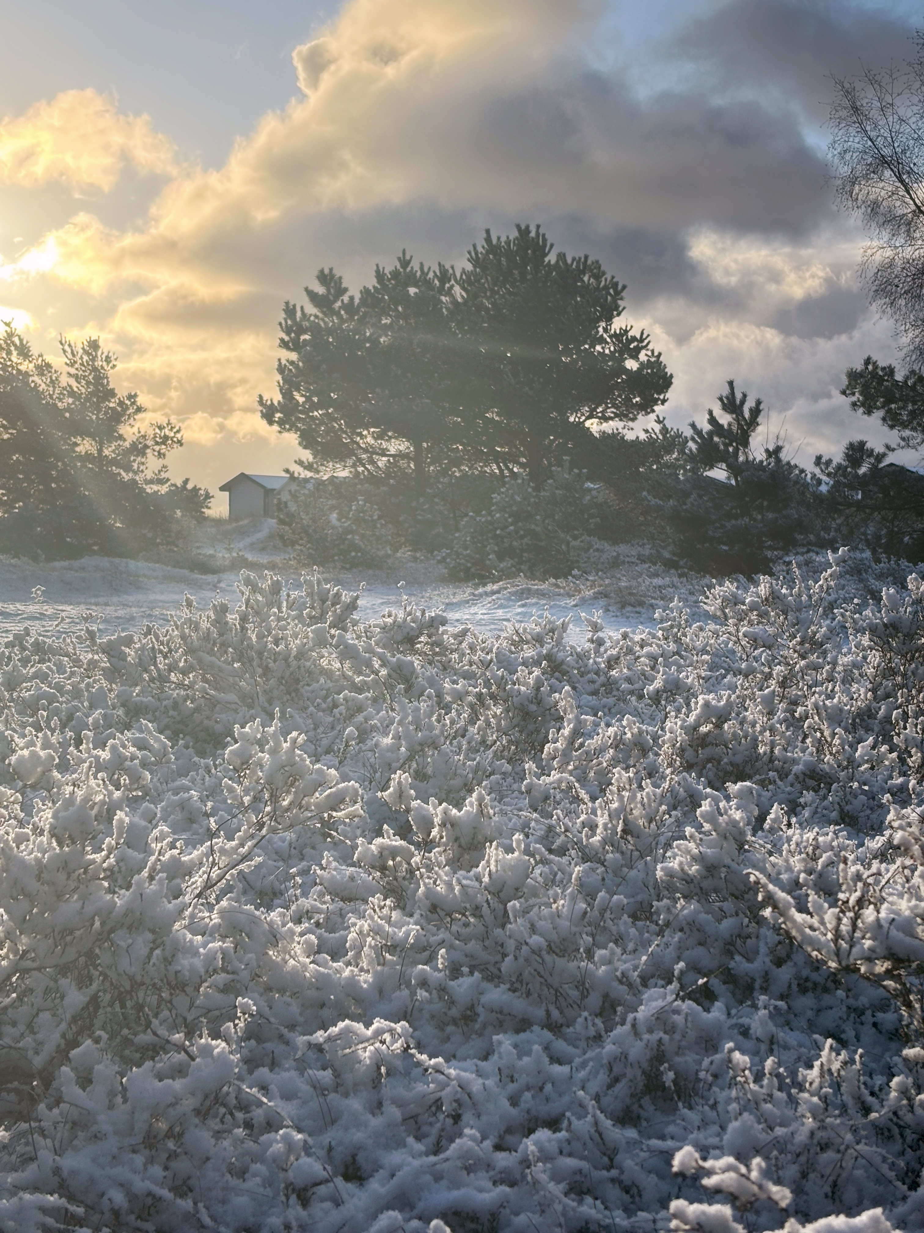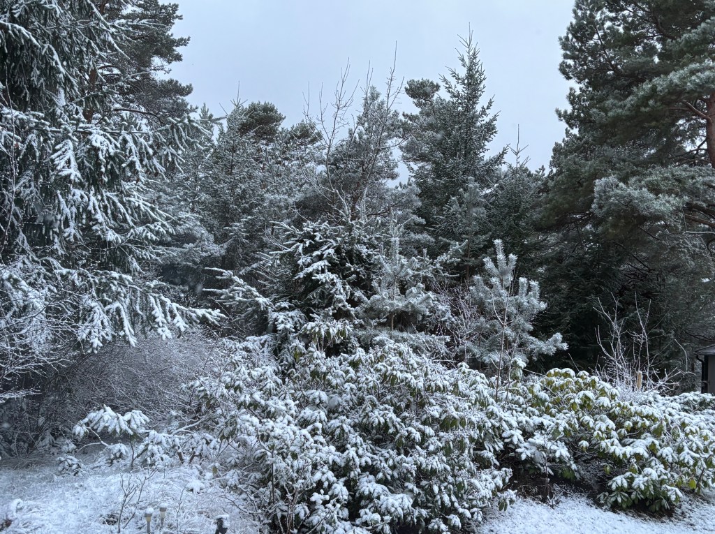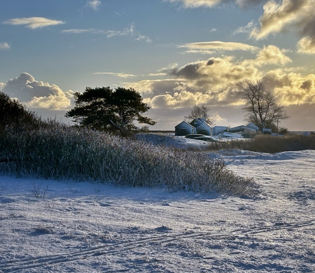 På årets första dagar fick jag en smärre chock när jag drog undan sovrumsgardinen; det var alldeles vitt ute! Dagen innan hade det varit över fem grader plus och vi var nog många som blev förvånade. Men det innebar chansen att ta lite fina vinterbilder och se vad nya mobilkameran går för. Jag blev nöjd, och det var en alldeles underbar morgon med sol och nästan vindstilla.