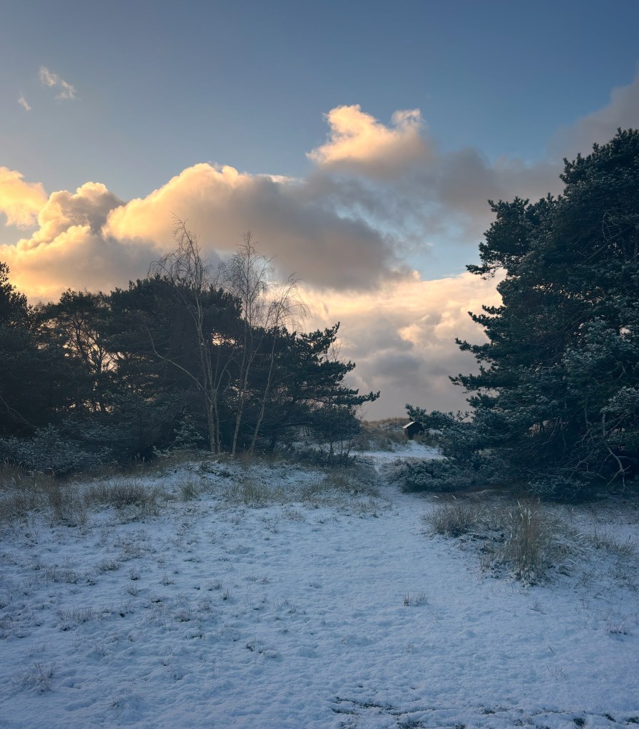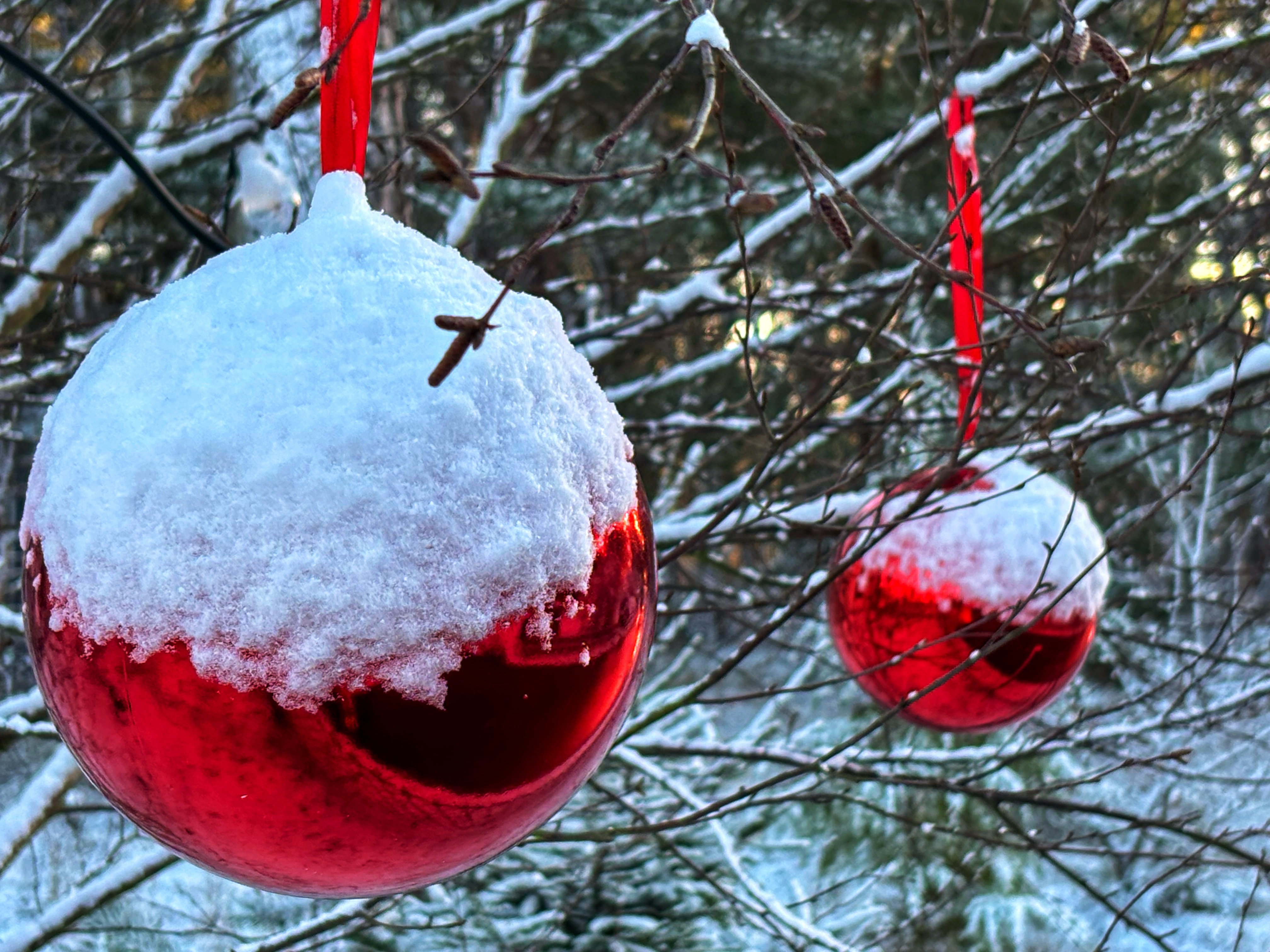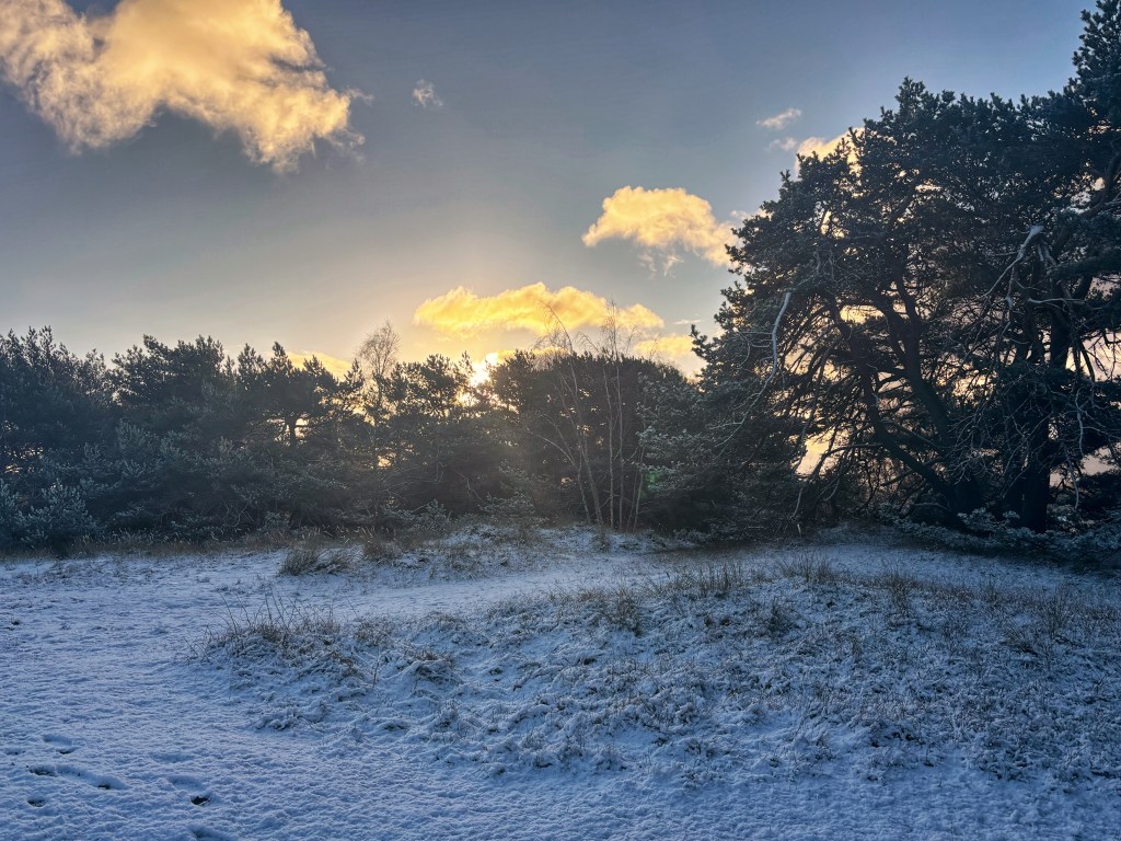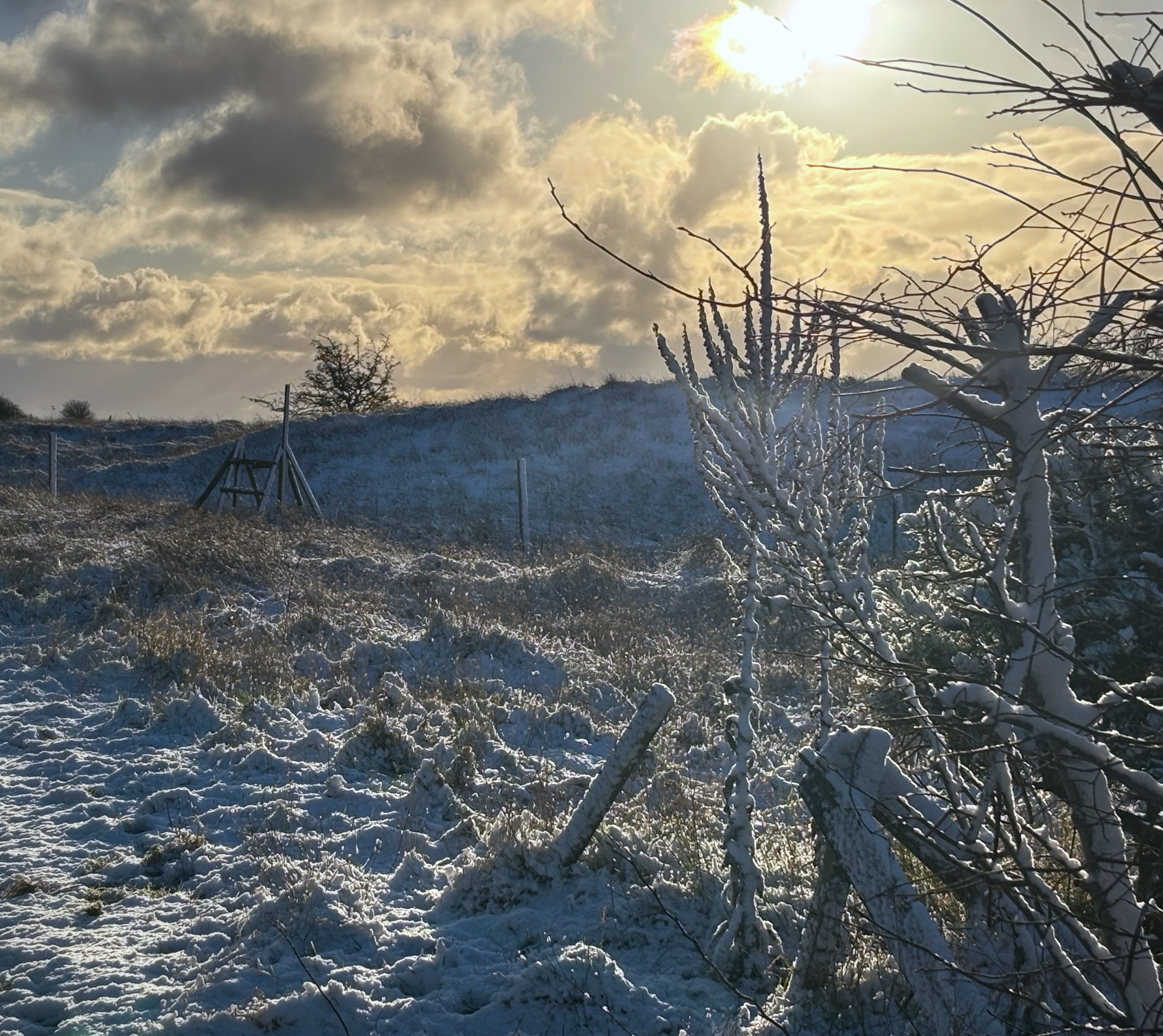 På årets första dagar fick jag en smärre chock när jag drog undan sovrumsgardinen; det var alldeles vitt ute! Dagen innan hade det varit över fem grader plus och vi var nog många som blev förvånade. Men det innebar chansen att ta lite fina vinterbilder och se vad nya mobilkameran går för. Jag blev nöjd, och det var en alldeles underbar morgon med sol och nästan vindstilla.