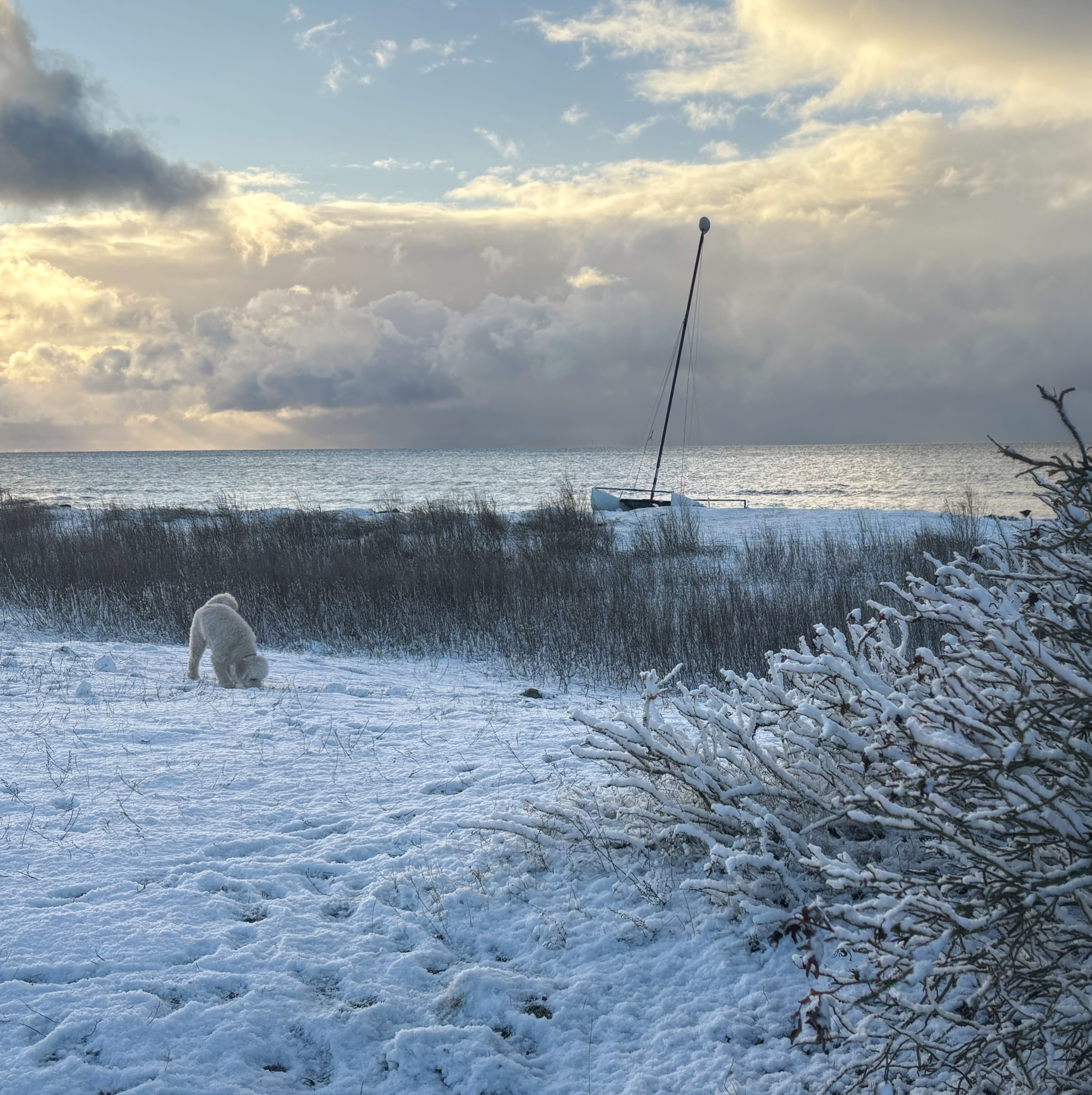 Förutom all god mat och annat på julafton gjorde vi en skön promenad ner till havet med stopp med glögg vid deras fina badhytt.