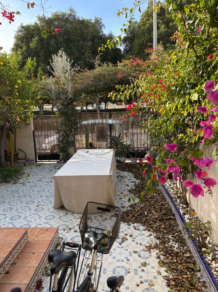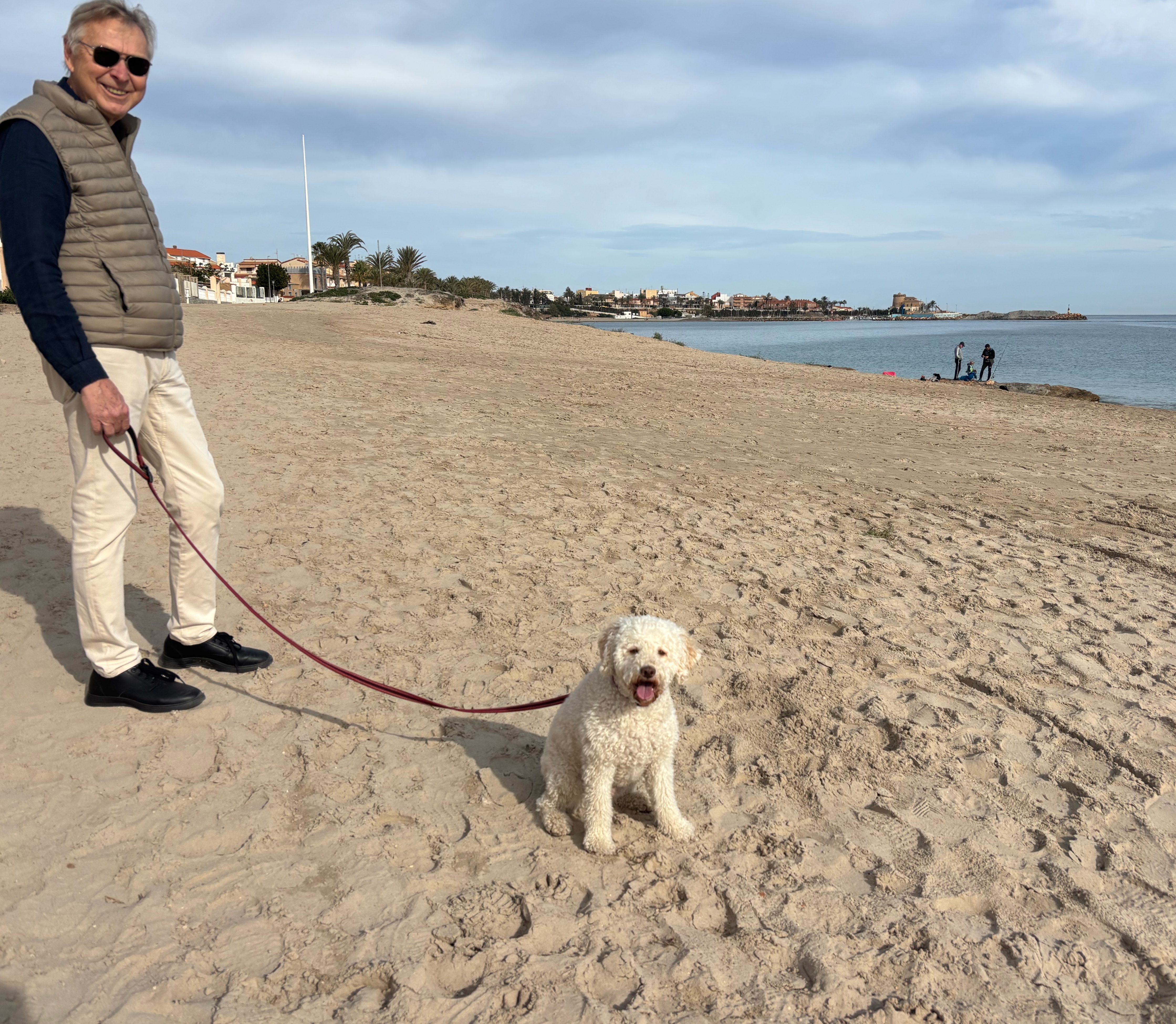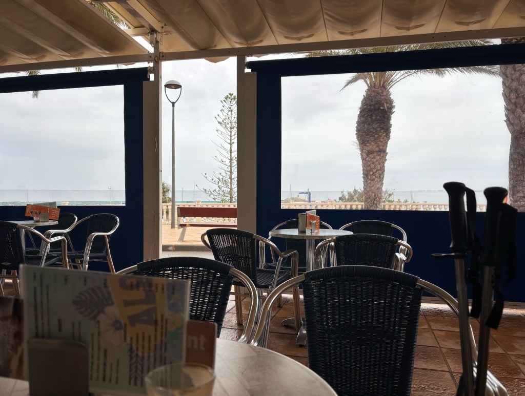 Nästa dag började med en varm dusch och sedan en lång hundrunda i solen, så skön att om jag hade kunnat så hade jag hjulat! Den sedavanliga cortadon på caféet vid havet, där vi förresten mötte min trevliga tredje- eller är det fjärdekusin med man.