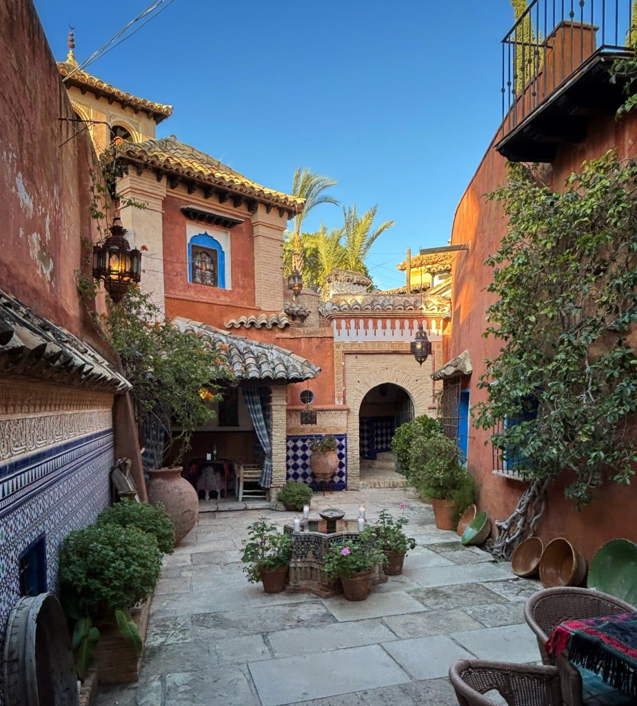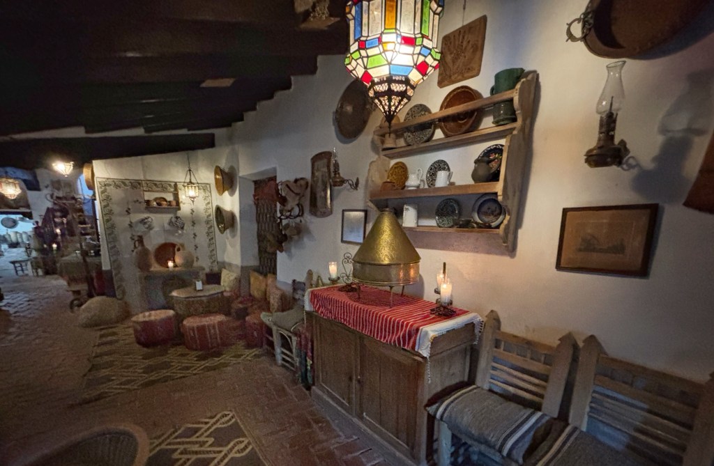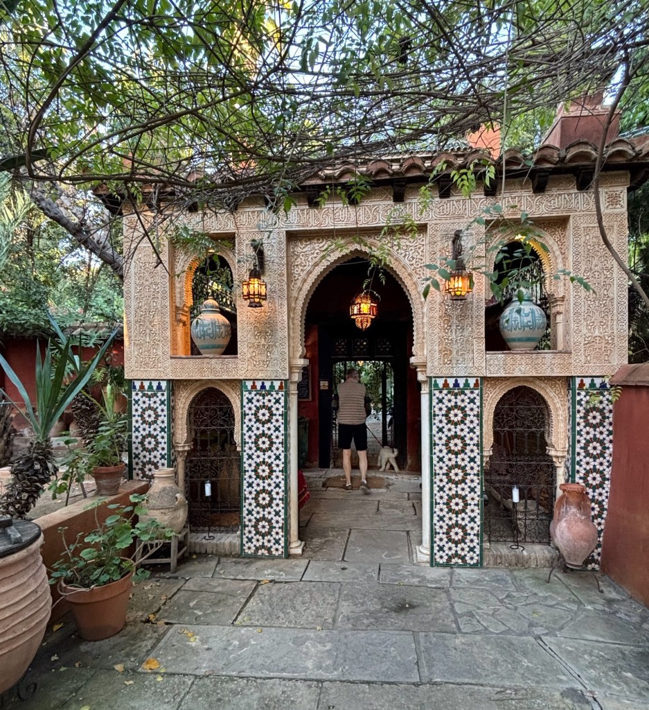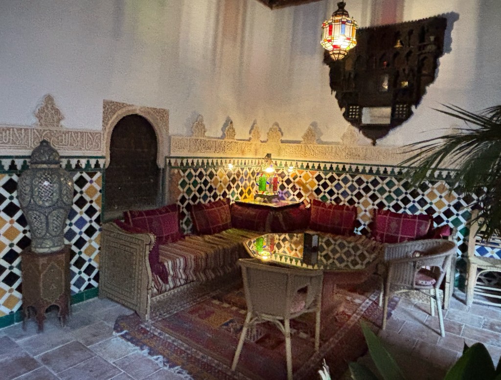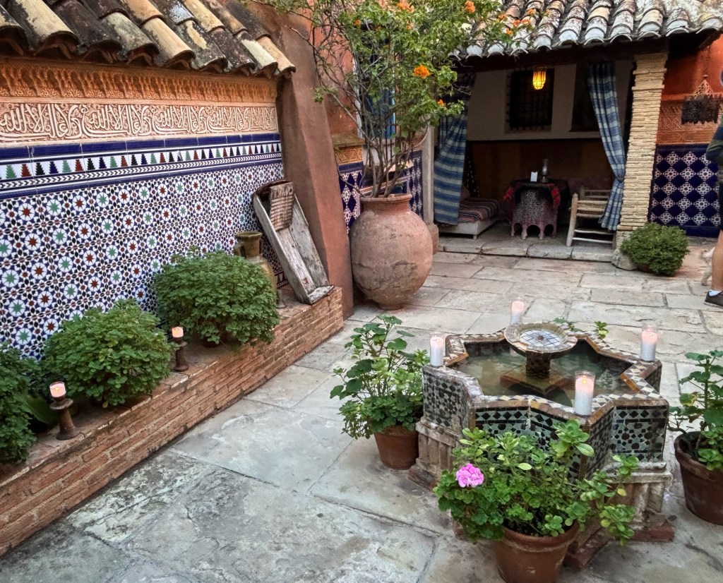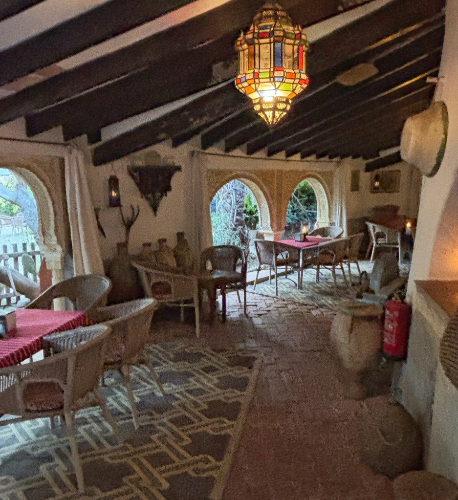Casa Morisca, som det också kallas, är ett gammalt moriskt hem, nu ett tehus, där ägarna har öppnat upp en stor del för besökare. Lite som Kulturen i Lund eller Skansen, man kan gå ut och in i olika byggnader och se hur det var förr. I ett rum vi kom in i satt ett väl moget par och kysstes. Mannen i paret såg lätt irriterad ut när vi kom. Och ännu surare när vi gick tillbaka för det var en återvändsgränd vi kommit in i, och han hade kommit längre i sin offensiva framfart med damen.