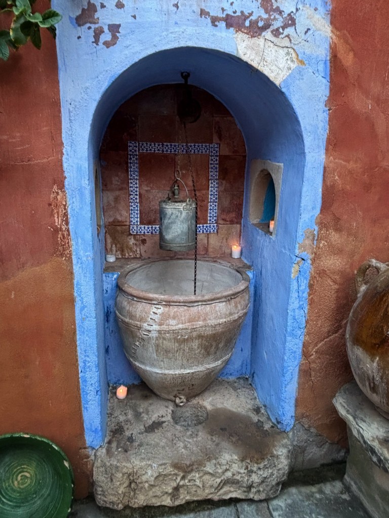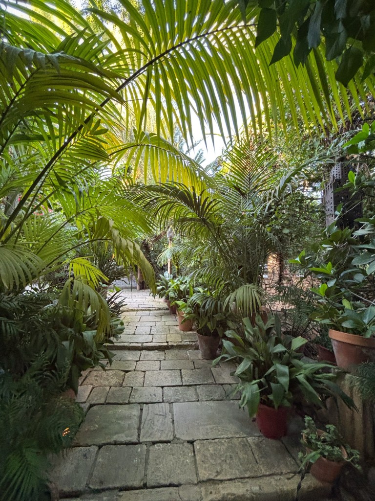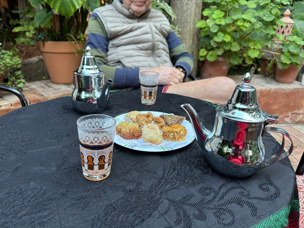 Både inomhus och ute i den fantastiska trädgården står bord med stolar utspridda, och när man sätter sig kommer det strax någon och frågar om man vill ha te. Det ingår i inträdet, (8€ pp) men de söta kakorna typ baklavas, får man betala extra för.