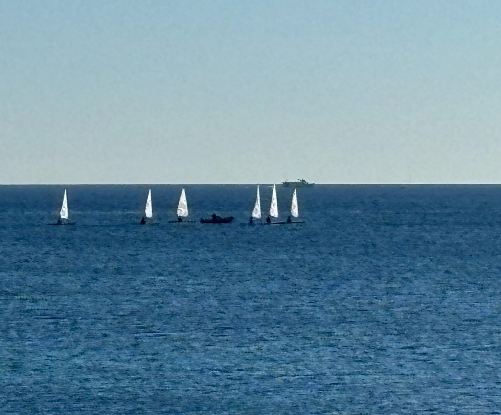 Oftast blir det också en cortado-paus på vägen, men det har hänt två gånger den här veckan att vi tröttnat på att vänta och rest oss upp och gått igen utan kaffe. Personalen på vårt favoritcafé vid havet varierar nämligen. Bäst och snabbast är en tjej som heter Bianca, är hon där och tar upp beställningen vet vi att vi får den så snabbt det går. Sedan är där bland annat en annan ung kvinna som helst kollar sin mobil eller pratar med två besökande väninnor, och den trion påminner starkt om gruppen the Mamas, även om jag aldrig hört de här ta en ton.