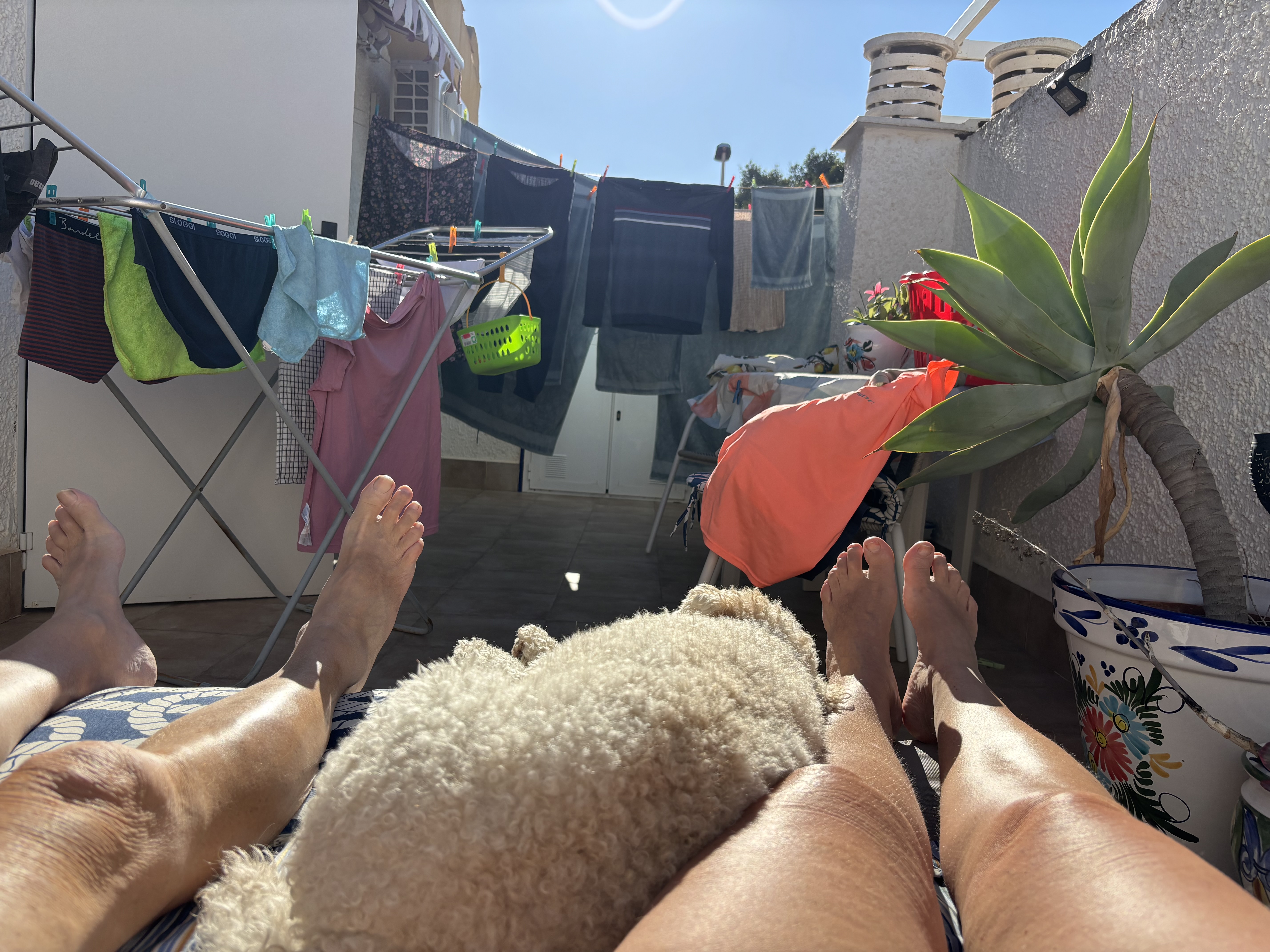 Vi anpassar oss ganska snabbt till livet och tempot i Spanien. Temperaturen inomhus har vi fått ordning på, och utomhustempen har också ordnat upp sig. I förrgår blev det till och med för varmt på vår terrass på gatuplan med över 40 grader, och vi funderade starkt på att gå till stranden, bara för att rub it in liksom, men det räckte med att gå upp på solterrassen däruppe där det fläktade lite grann.
